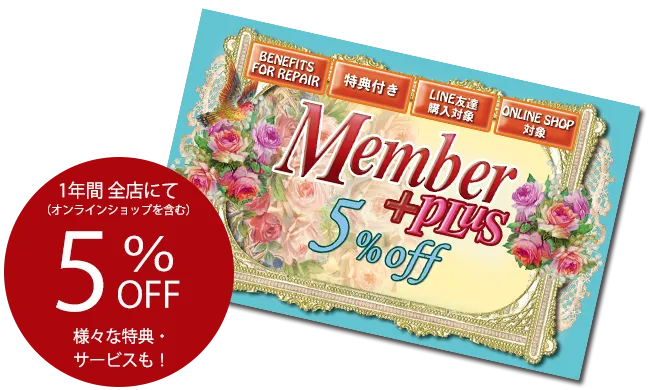 この特別なカードは1年間、全店(オンラインショップを含む)にて 5%OFFにてお買い物していただけるほか、様々な特典・サービスを受けることが出来ます。