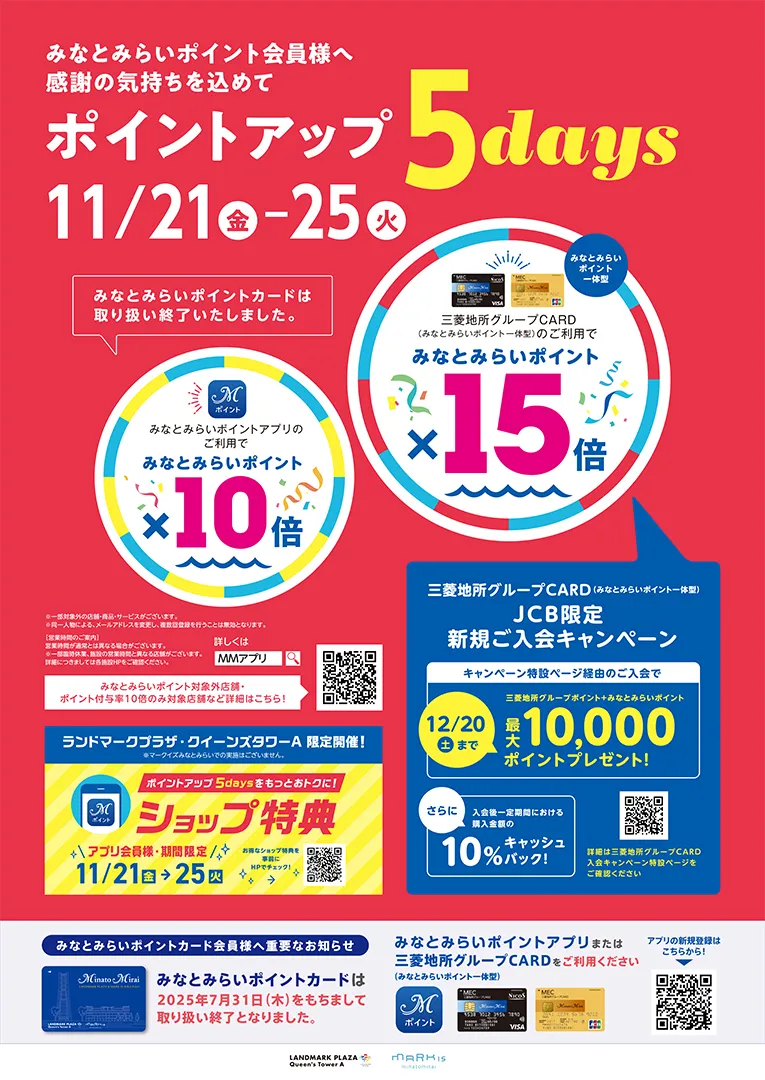 みなとみらいポイントアプリ10倍、 三菱地所グループカード15倍のいつもよりお得なキャンペーン!!